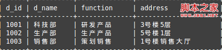 MySQL筆記之連接查詢詳解 可以看到,上面兩張表都有同一個字段d_id 當兩張表含有相同意義的字段(可以不同名)時就可以進行連接查詢 內連接查詢 復制代碼 代碼如下: mysql> SELECT num, name, employee.d_id, sex, d_name, function -> FROM employee, department -> WHERE employee.d_id=department.d_id; +------+--------+------+------+-----------+--------------+ | num | name | d_id | sex | d_name | function | +------+--------+------+------+-----------+--------------+ | 1 | 張三 | 1001 | 男 | 科技部 | 研發產品 | | 2 | 李四 | 1001 | 女 | 科技部 | 研發產品 | | 3 | 王五 | 1002 | 男 | 生產部 | 生產產品 | +------+--------+------+------+-----------+--------------+ rows in set (0.00 sec) 內連接查詢只會查詢完全匹配的結果,此處使用d_id字段進行連接 下面的表中也同樣使用這一字段 外連接查詢 外查詢也需要通過指定字段來進行連接,當該字段取值相等時,可以查詢出該記錄 而且,該字段取值不相等的記錄也可以查詢出來 外連接查詢包括左連接查詢和右連接查詢 左連接查詢 復制代碼 代碼如下: mysql> SELECT num, name, employee.d_id, d_name, function -> FROM employee LEFT JOIN department -> ON employee.d_id=department.d_id; +------+--------+------+-----------+--------------+ | num | name | d_id | d_name | function | +------+--------+------+-----------+--------------+ | 1 | 張三 | 1001 | 科技部 | 研發產品 | | 2 | 李四 | 1001 | 科技部 | 研發產品 | | 3 | 王五 | 1002 | 生產部 | 生產產品 | | 4 | Aric | 1004 | NULL | NULL | +------+--------+------+-----------+--------------+ rows in set (0.00 sec) 此處不僅查詢出了兩表中d_id字段相匹配的信息 并且通過LEFT JOIN查詢出了employee表中所有指定字段的信息 由于Aric沒有對應d_name和function信息,所以顯示null 右連接查詢 復制代碼 代碼如下: mysql> SELECT num, name, employee.d_id, d_name, function -> FROM employee RIGHT JOIN department -> ON employee.d_id=department.d_id; +------+--------+------+-----------+--------------+ | num | name | d_id | d_name | function | +------+--------+------+-----------+--------------+ | 1 | 張三 | 1001 | 科技部 | 研發產品 | | 2 | 李四 | 1001 | 科技部 | 研發產品 | | 3 | 王五 | 1002 | 生產部 | 生產產品 | | NULL | NULL | NULL | 銷售部 | 策劃銷售 | +------+--------+------+-----------+--------------+ rows in set (0.00 sec) 與上面相反,這里查詢出了匹配的信息和department表中的所有指定字段的信息 但是由于employee表中部分字段沒有對應,因此最后一行記錄有顯示NULL 復合條件連接查詢 復制代碼 代碼如下: mysql> SELECT num, name, employee.d_id, sex, age, address -> FROM employee, department -> WHERE employee.d_id=department.d_id -> AND age>=25; +------+--------+------+------+------+-------------+ | num | name | d_id | sex | age | address | +------+--------+------+------+------+-------------+ | 1 | 張三 | 1001 | 男 | 26 | 3號樓5層 | | 3 | 王五 | 1002 | 男 | 25 | 5號樓1層 | +------+--------+------+------+------+-------------+ rows in set (0.00 sec) 復合條件連接查詢是在進行連接查詢的時候加入限制條件,此處的age>=25便是 通常情況下,限制條件越多,查詢越精確,限制條件可用AND累加 此外,還可以用復合條件進行ORDER BY 排序 tips:連接查詢中使用最多的是內連接查詢,而外連接查詢使用頻率較低