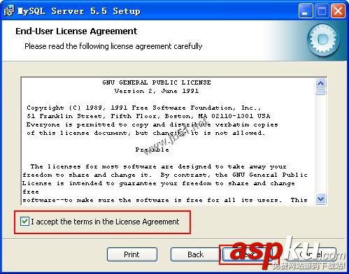 3、打開(kāi)End-User License Agreement對(duì)話框,選中I accept the terms in the License Agreement復(fù)選框,單擊Next按鈕,如圖所示: