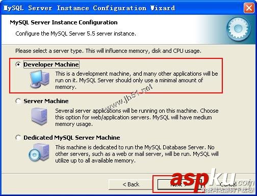 Developer Machine:該選項(xiàng)代表典型個(gè)人桌面工作站。假定機(jī)器上運(yùn)行著多個(gè)桌面應(yīng)用程序。將MySQL服務(wù)器配置成使用最少的系統(tǒng)資源。