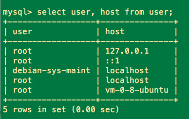我們使用通配符 % 來修改 root 用戶對應的 host 字段,使具有訪問所有 ip 地址的權限: