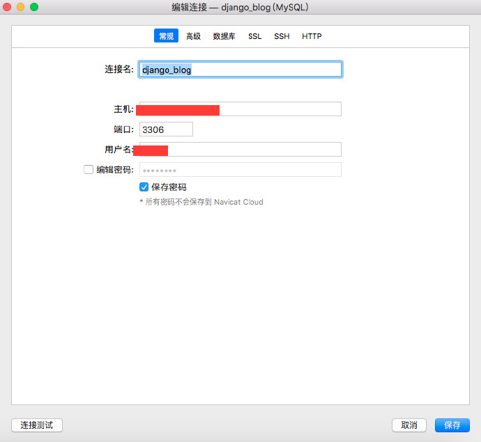 打開 Navicat,點擊左上方的 "連接",設置一下數據庫的用戶名,地址,密碼等,便能在 Navicat 中遠程操作服務器上的 MySQL 啦。