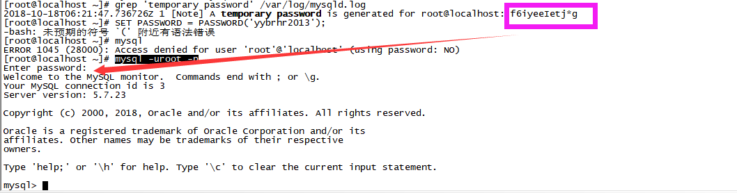 grep 'temporary password' /var/log/mysqld.log