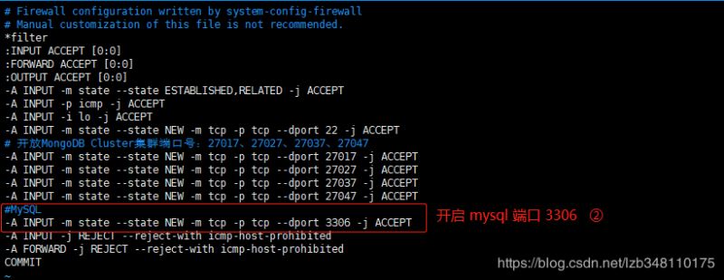本實例使用 MySQL 默認端口 3306 來演示。通過命令 vi /etc/sysconfig/iptables 來開放端口