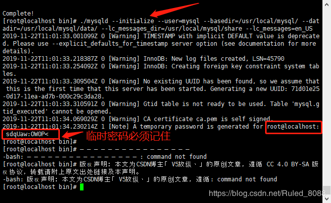 如果忘記密碼或者想重新初始化,可以先將mysql/data目錄中文件刪除,然后再執行初始化命令。