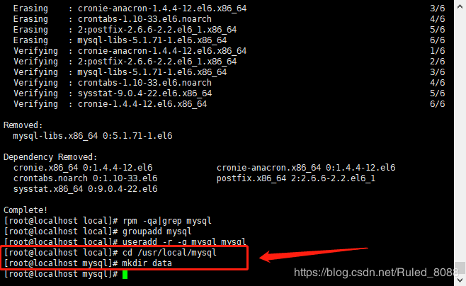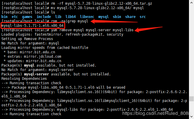 輸入:rpm -qa|grep mysql命令再進行查看 什么也不顯示表示已經刪除。