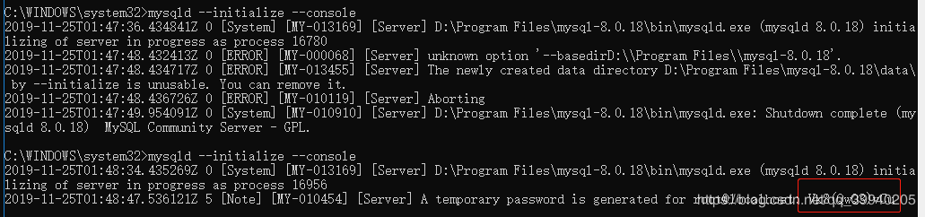 2019-11-25T02:10:27.196981Z 5 [Note] [MY-010454] [Server] A temporary password is generated for root@localhost: ZuN&Xe02&=b<