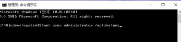 接下來,我們在命令行窗口中輸入"net user administrator /active:yes",然后按下回車鍵。