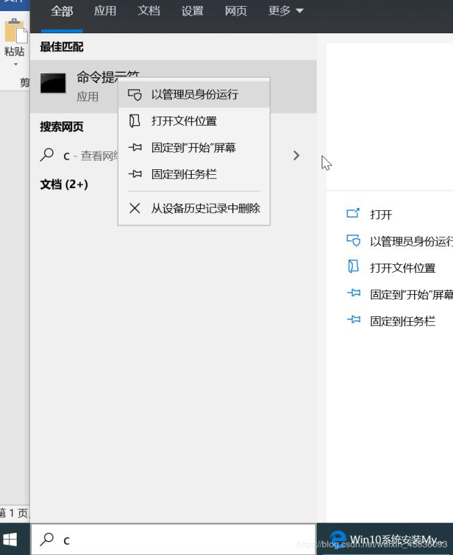 對著第一個桌面應用擊右鍵,選擇“以管理員身份運行”選項,就可以以管理員身份打開命令行窗口。