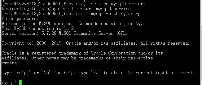 輸入exit,退出MySQL,然后試著用zhangsan這個賬戶登錄一下。