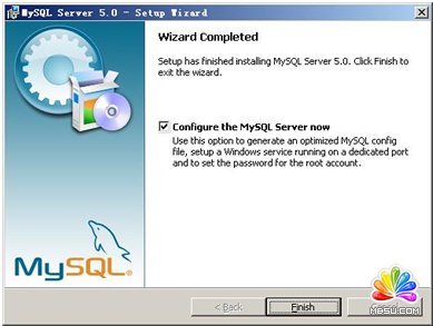 現在軟件安裝完成了,出現上面的界面,這里有一個很好的功能,mysql配置向導,不用向以前一樣,自己手動亂七八糟的配置my.ini了,將 “Configure the Mysql Server now”前面的勾打上,點“Finish”結束軟件的安裝并啟動mysql配置向導。