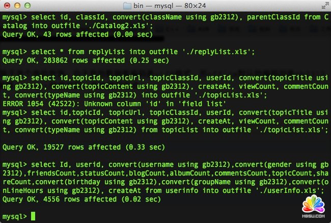 由于需要是把數據導出為excel,所以通過mysql控制臺使用select語句把數據導出到excel文件中。
