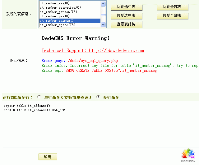 在DEDE的后臺(tái)SQL操作中直接輸入