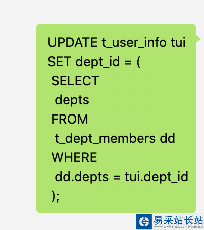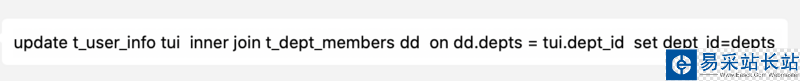 t_dept_members, 系統中有另外一張表 t_user_info 記錄了人員信息。要求將 t_dept_members 中有變化的信息更新到 t_user 表中,這個需求就是「跨表更新」啦