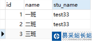 4. 執(zhí)行 UPDATE student s RIGHT JOIN class c ON s.class_id = c.id SET s.class_name='test33',c.stu_name='test33'
