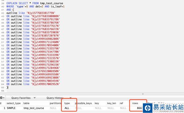 下面分別列出4種方式查詢outline字段,給出相應(yīng)的查詢時(shí)間和掃描行數(shù)