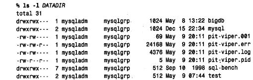 狀態文件出現在數據目錄的最高級,就像數據庫目錄一樣,因此您可能會想到那些文件的名字是否會相互混淆或者被誤認為是數據庫名(例如,當服務器正在執行s h o w database 語句時)。答案是:不會的。狀態和日志信息存儲在文件中,而數據庫是目錄,因此可執行程序可以將它們與一個簡單的stat() 調用相區別(是服務器告訴它們怎樣區分的)。如果您正在監視數據目錄,則可以通過使用ls -l 將狀態文件從數據庫目錄中區分開來,并且檢查該模式信息的第一個字符以查看它是‘ -’還是‘d’: