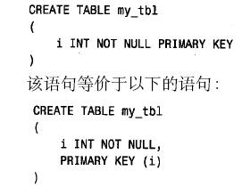 與alter table 一樣,索引名對于index 和unique 都是可選的,如果未給出,mysql將為其選一個。有一種特殊情形:可在列定義之后增加primary key 創建一個單列的primary key索引,如下所示: