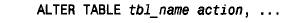 每個action 表示對表所做的一個修改。mysql擴充了alter table 語句,允許指定多個動作,各動作間以逗號分隔。這對于減少鍵盤輸入很有用,但這個擴充的更為重要的原因是,除非能同時將所有varchar 列更改為char 列,否則不可能將表從行可變長的表更改為行定長的表。