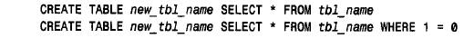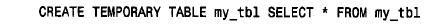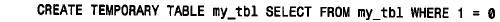 要創建一個作為自身的空拷貝的表,可以與create temporary ... select 一起使用where 0 子句,例如: