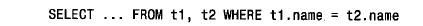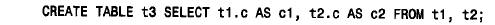 如果選擇了來自不同表的具有相同名稱的列,將會出現一定的困難。假定表t1和t2 兩者都具有列c,而您希望創建一個來自兩個表中行的所有組合的表。那么可以提供別名指定新表中惟一性的列名,如: