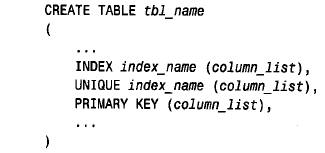 tbl _ name、index_name 和column_list 具有與alter table 語句中相同的含義。這里索引名不可選。不能用create index 語句創建primary key 索引。要想在發布create table 語句時為新表創建索引,所使用的語法類似于alter table 語句的語法,但是應該在您定義表列的語句部分指定索引創建子句,如下所示: