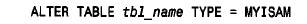 ■ 轉換表的類型。如果從mysql3.23 版以前的版本升級到3.23 版或更高,那么可能會有一些原來創建為isam 表的舊表。如果希望使它們為myisam 格式,如下操作:
