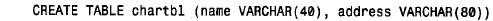 ■ 將表從可變長行轉換為定長行。假如有一個表chartbl 具有varchar 列,想要把它轉換為char 列,看看能夠得到什么樣的性能改善。(定長行的表一般比變長行的表處理更快。)這個表如下創建: