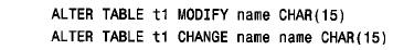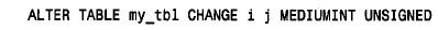為什么在change 命令中給出列名兩次?因為change 可以做的而modify 不能做的一樁事是,除了更改類型外還能更改列名。如果希望在更改類型的同時重新將i 命名為j,可按如下進行: