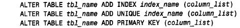 為了給現有的表增加一個索引,可使用alter table 或create index 語句。alter table 最常用,因為可用它來創建普通索引、unique 索引或primary key 索引,如: