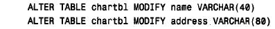 ■ 將表從定長行轉換為可變長的行。雖然, chartbl 用定長行更快,但它要占用更多的空間,因此決定將它轉換回原來的形式以節省空間。這種轉換更為容易。只需將某個char 列轉換為varchar 列,mysql就自動地轉換其他的char 列。要想轉換chartbl 表,用下列任一條語句都可以: