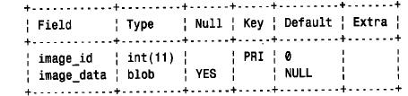 與select 相類似,兩個語句都返回結果集。為了在表中找出有關列,所需做的就是處理結果集中的行,從中獲取有用的信息。例如,如果從mysql客戶機上發布describe images 語句,就會返回這樣的信息: