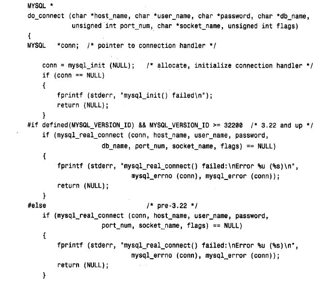 要想修正do _ connect( ),使它可以處理mysql_real_connect() 的舊格式,那么就可以使用包括當前mysql版本mysql_version_id 宏。更改了的do_connect() 測試mysql_version_id 值,并使用mysql_real_connect() 的正確格式: