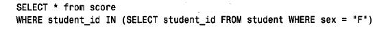 下面是一個包含一個子選擇查詢的樣例,它從score 表中選擇所有測試的學分(即,忽略測驗的學分):