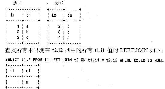 我們已經在3 . 6節“檢索記錄”中看到,在要想知道一個表中哪些值不出現在另一表中時,可對兩個表使用left join 并查找那些從第二個表中選中null 的行。并用下列兩個表舉例: