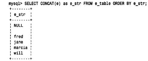 null 值排在其他值前(如果是降序,將排在其他值之后)。如果有一個固定的值集,并且希望按特殊的次序進行排序,可利用enum 的排序順序。在創建表時做一個enum 列,并在該列的定義中以所想要的次序給出各枚舉值即可。如果希望enum 按正常的字典順序排序,可使用c o n c at( ) 和排序結果將列轉換成一個非enum 串,如下所示: