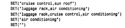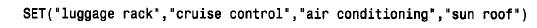然后,特定的set 值將表示顧客實際訂購哪些選件,如下所示: