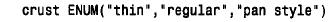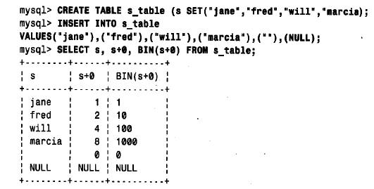 空串表示顧客未訂購任何選件。這是一個合法的set 值。set 列值為單個串。如果某個值由多個集合成員組成,那么這些成員在串中用逗號分隔。顯然,這表示不應該用含有逗號的串作為set 成員。set 列的其他用途是表示諸如病人的診斷或來自web 頁的選擇結果這樣的信息。對于診斷,可能會有一個向病人提問的標準癥狀清單,而病人可能會表現出某些癥狀或所有的癥狀。對于在線比薩餅服務系統,用于訂購的web 頁應該具有一組復選框,用來表示顧客想在比薩餅上加的配料。對enum 或set 列的合法值列表的定義很重要,例如: