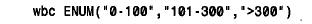 如果枚舉類別表示計數,在建立該枚舉時最重要的是選擇合適的類別。例如,在記錄實驗室檢驗中白血球的數目時,可能會將計數分為如下的幾組: