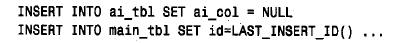 ■ 最近自動產生的序列編號值可調用l a s t _ insert_id( ) 函數得到。它使得能在其他不知道此值的語句中引用auto_increment 值。l a s t _ insert_id( ) 依賴于當前服務器會話中生成的auto_increment 值; 它不受與其他客戶機相關的auto_increment 活動的影響。如果當前會話中沒有生成auto_increment 值,則l a s t _ insert_id( ) 返回0。能夠自動生成順序編號這個功能特別有用。但是剛才介紹的auto_increment 性能有兩個缺陷。首先,序列中頂上的記錄被刪除時,序列值的重用使得難于生成可能刪除和插入記錄的應用的一系列單調(嚴格遞增)值。其次,利用從大于1的值開始生成序列的方法是很笨的。