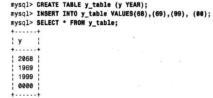請注意,00 轉換為0000 而不是2 0 0 0。這是因為0 是year 類型的一個完全合法的值;如果插入一個數值,得到的就是這個結果。要得到2 0 0 0,應該插入串“ 0”或“0 0”。可通過c o n c at( ) 插入year 值來保證mysql得到一個串而不是數。c o n c at( ) 函數不管其參數是串或數值,都返回一個串結果。請記住,將兩位數字的年份值轉換為四位數字的年份值的規則只產生一種結果。在未給