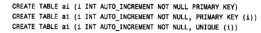 在一個表具有多個列時(正如多數表那樣),最后的auto_increment = 1000000子句應用到哪一列是不會混淆的,因為每個表只能有一個auto_increment 列。
