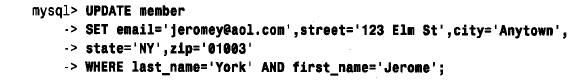 可同時更新多個列。下面的語句將更新jerome 的電子郵件和通信地址: