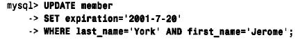 還可以通過設置某列的值為null(假設此列允許null 值)“不設置”此列。如果在未來的某個時候jerome 決定支付成為終生會員的會員資格更新費,那么可以設置其記錄的終止日期為null(“永久”)以標記他為終生會員。具體設置如下: