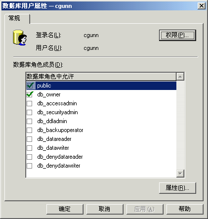 下一個選項卡是 database access。這個屬性頁不但提供對單個數據庫的訪問,而且可以訪問實際位于 sql server 上的索引數據庫。選擇數據庫后,再設置數據庫角色。默認情況下,所有用戶都可訪問公共角色。這個角色仍然需要分配權限。此圖中還選擇了另一個角色 db_owner,它只允許用戶無限制訪問數據庫,但不能無限制訪問整個 sql server 或者其它數據庫,除非單獨選擇了其它數據庫并分配了 db_owner 權限。