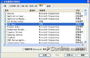 我們知道在Windows 啟動的時候會啟動相當數量的服務,而且各種不同的軟件也會把自己的進程注冊成系統進程,在系統啟動時啟動。這樣也會造成系統啟動速度變得緩慢。在圖3所示的服務頁面截圖中,我們可以看到系統中的所有服務項目。我們可以把不需要服務禁止使用或者開啟需要開機時就啟動的服務。