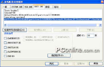 圖2所示的是系統的“BOOT.INI”文件內容,這里顯示了系統啟動文件的內容,并且我們更改系統選擇頁面的超時時間,并檢查啟動路徑是否有效。如果你安裝了多系統的話,那也可以在這里看到多系統的啟動項目。