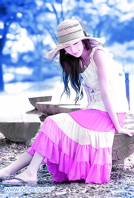 調色只能是作為一個參考,不同圖片調色的方法是各不相同的,不過可以從幾個大的方面入手:通道調色,背景效果處理,人物局部調色。原圖