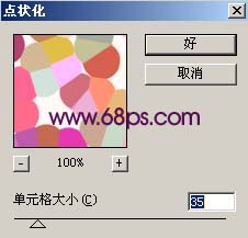 2.按ctrl + j復制一層,執行菜單:濾鏡 > 像素化 > 點狀化,參數設置如圖2,確定后把圖層混合模式改為“正片疊底”,然后加上圖層蒙版用黑色畫筆把人物部分擦出來效果如圖3