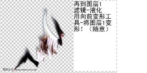 3.在到圖層1,按shift + ctrl + x執(zhí)行液化操作,用向前變形工具將圖層1變形。