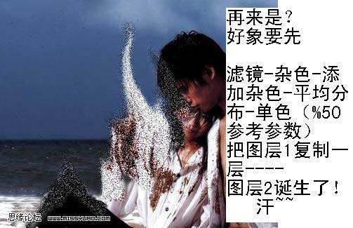 | 4.執(zhí)行菜蛋:濾鏡 > 雜色 > 添加雜色,平均分布,單色數(shù)值為50%左右,確定后再按ctrl + j復(fù)制一層。 |